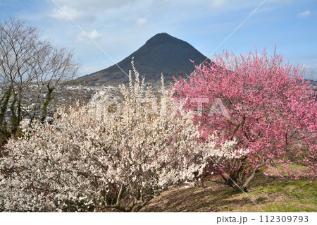 讃岐富士と梅花1(香川県丸亀市飯山町)
