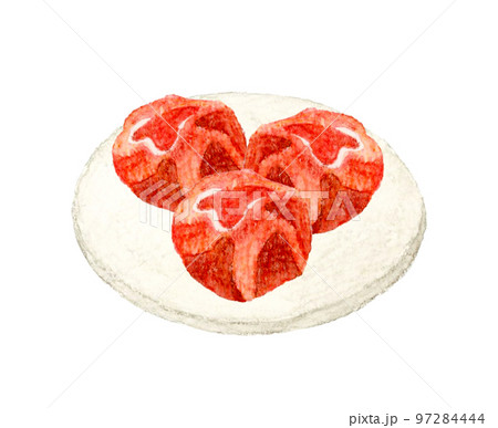 梅干しをのせたご飯 和食の手描き水彩イラスト素材