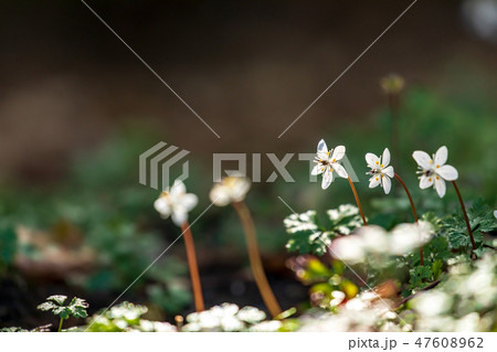 キンポウゲ科の多年草白い小さな花バイカオウレン
