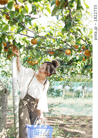 梨狩りをするかわいい女性