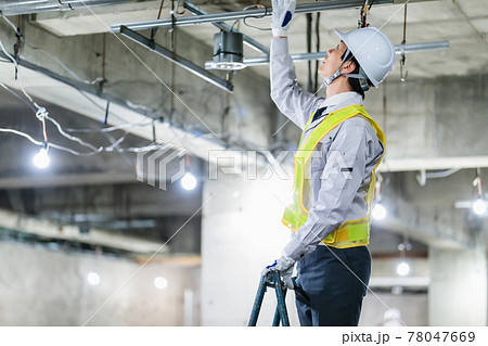電気工事 仮設電気の出迎え幹線 電気工事士の作業風景