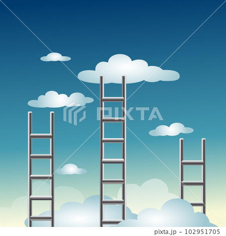 Three Stairs with clouds. Success or growth concept. Vector illustration.