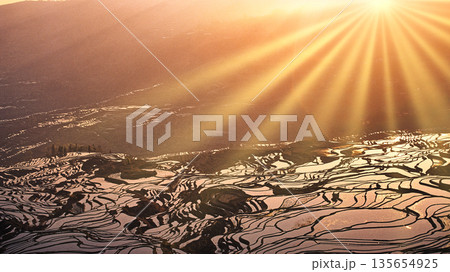 中国雲南省元陽・ 多依樹棚田の夜明け / Duoyishu, Yuanyang, China