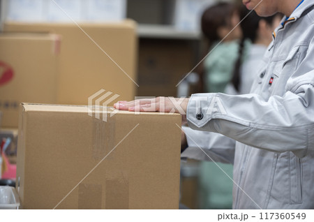 バックヤードでラベリングをする若い作業員 顔無し