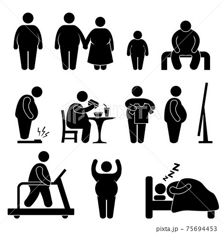 Fat Man Woman Kid Child Couple Obesity Overweight Icon Symbol Sign Pictogram. A set of pictogram representing that are fat and obese.