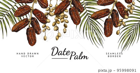 Date palm seamless border, hand drawn sketch vector illustration on white background.