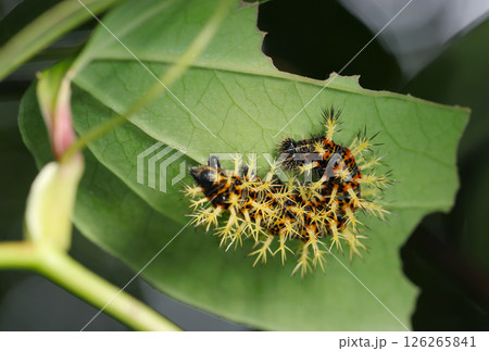 大きく成長したルリタテハ日本基亜種の幼虫(自然光+ストロボマクロ撮影)