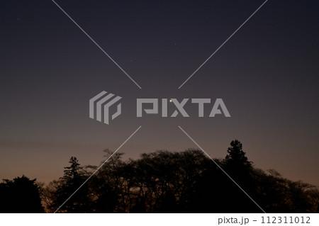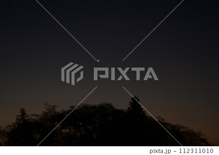 夜明け間近の森の上に輝く明けの明星
