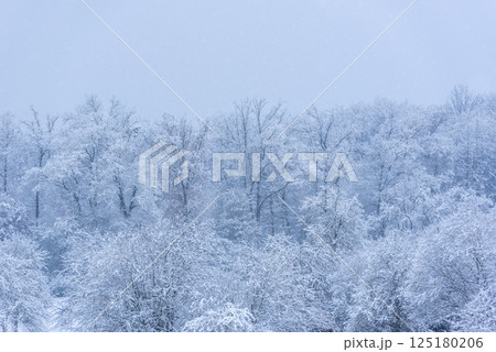 Winter scenery with forest on a blizzard