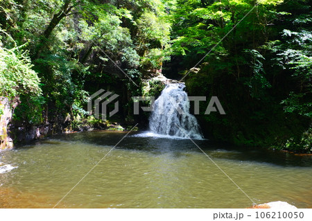 赤目四十八滝、布曳滝。スローシャッター(長時間露光)で撮影した細い滝