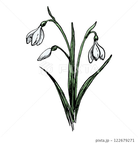 Hand Drawn Colorful Spring Flower Snowdrop