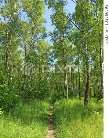 Birch trees with green spring plants, Czechia