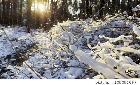 forest background in winter season. sunny outdoor scenery with snow on the ground