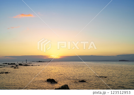 湘南葉山の森戸海岸で望む幻想的な夕暮れの海