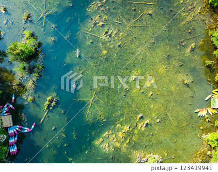 Aerial view top down Drone view over swamp or lake,Amazing nature view in the morning at Klong root lake Krabi Thailand