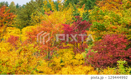 秋の長野県大桑村 紅葉の阿寺渓谷(渓谷沿いの道)