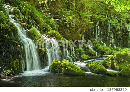 秋田県にかほ市の初夏 新緑の元滝伏流水