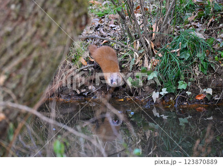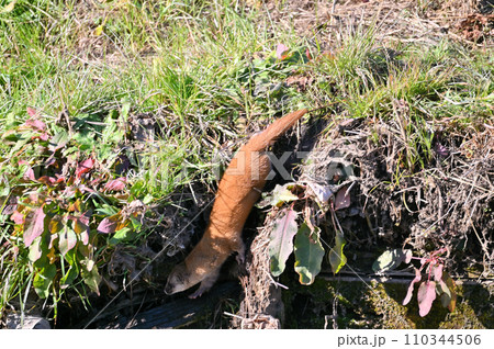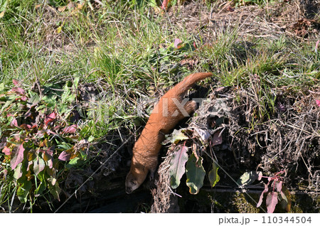 巣穴(餌場 狩場)にいるイタチ ニホンイタチ 野生