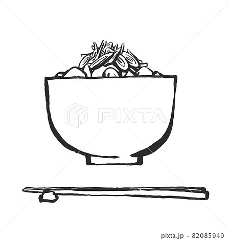 ごはんと豚汁の手描き筆絵風イラスト