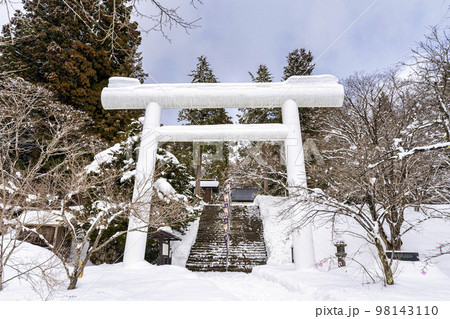 冬の土津神社 白い鳥居と参道 福島県猪苗代町