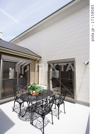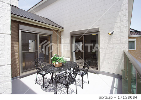 住まいのバルコニー イメージ 広い テーブル 椅子あり