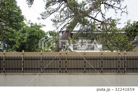 日本庭園に設置された垣根