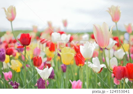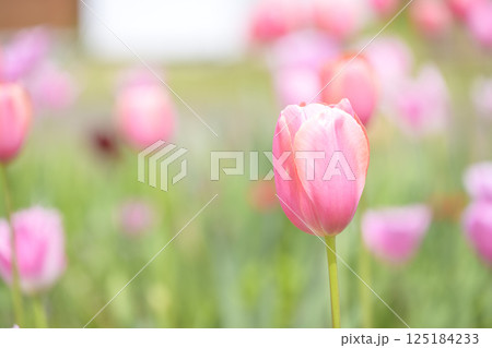 チューリップ畑 ピンクのチューリップ 春の花 4月