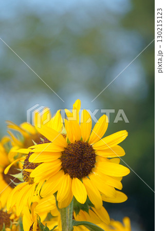 青空の玉ボケを背景にしたひまわり
