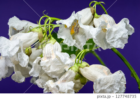 Catalpa Speciosa White Flowers Popping Against Vibrant Purple