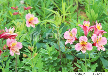 雨あがる明るい空の下、それぞれに華麗な花を咲かせる。