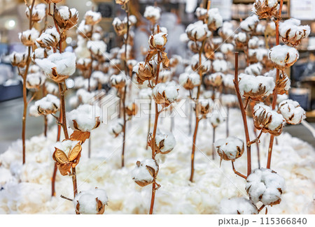 [素材] 天然繊維を展示する環境に優しい店舗の綿花。