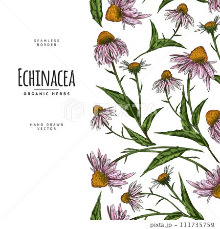 Vector seamless pattern border with echinacea flowers and place for text.