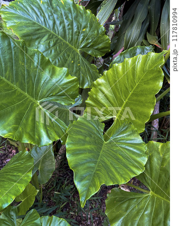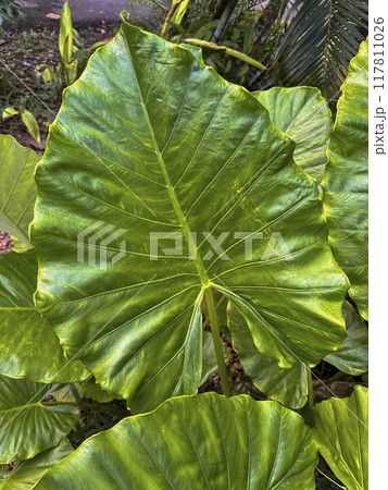 Alocasia macrorrhiza with giant green leaves, perfect for tropical decor and indoor gardens. Capture the lush beauty of this elephant ear plant, ideal for nature enthusiasts and home decor lovers
