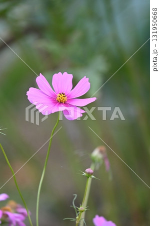 秋の野原に咲くピンクのコスモスの花
