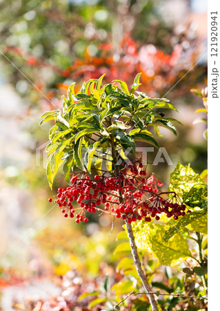 冬の日差しと万両の樹