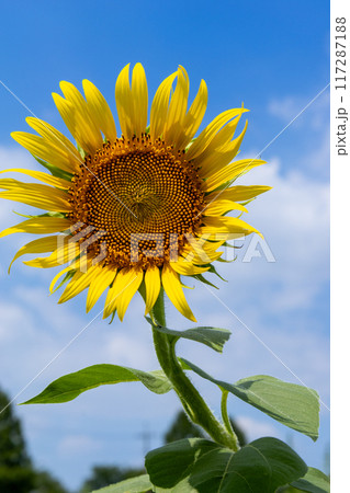 ひまわり畑に咲く大きなひまわり アップ