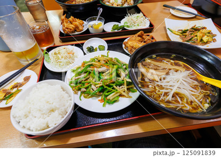 チンジャオロースと唐揚げ、ラーメンのセット。伊東港にある美味しくて安い中華料理店。伊東市静岡県
