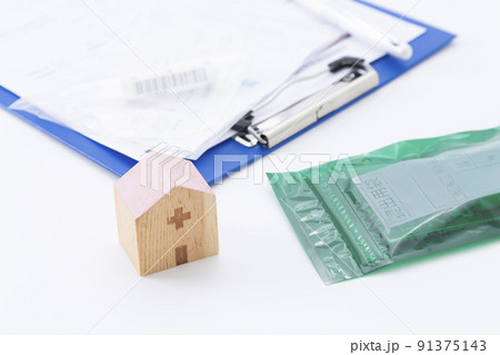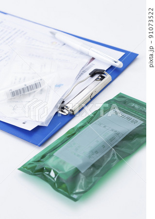 白背景に問診票と検便キット