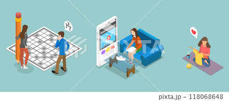 3D Isometric Flat Vector Illustration of Stay at Home Games, Learning and Leisure