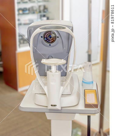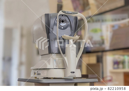 Close up of phoropter eyesight measurement testing machine, Eye health check and ophthalmology concept.