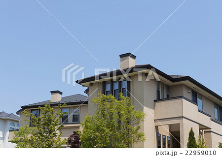 住宅 新築住宅街 イメージ 電線地中化 植栽のきれいな街並み 青空と雲