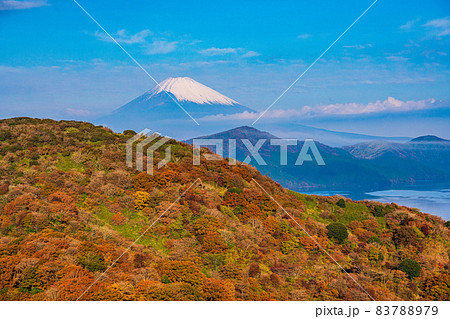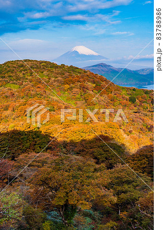 (神奈川県)紅葉の箱根天閣台から望む、富士山