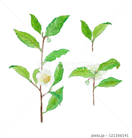 茶の花 チャノキ Camellia sinensis 水彩イラスト