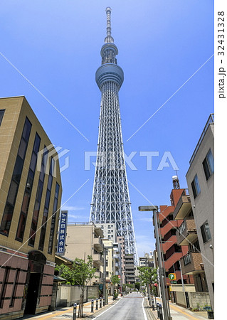 墨田区業平・タワービュー通りからスカイツリーを望む
