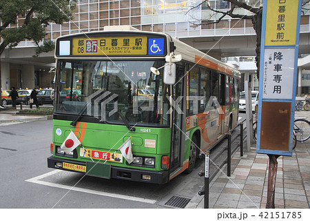 日暮里駅前に停車中の都営バス(南千住営業所/日野レインボーHR)