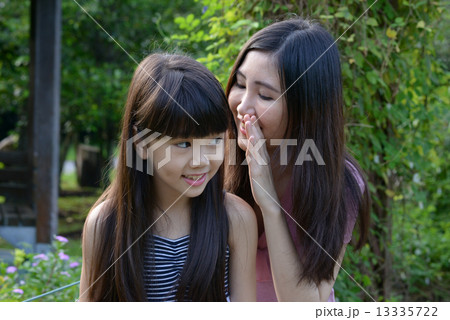 Mother and daughter sharing a secret