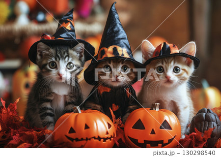 ハロウィーン素材 魔女とかぼちゃと黒い猫