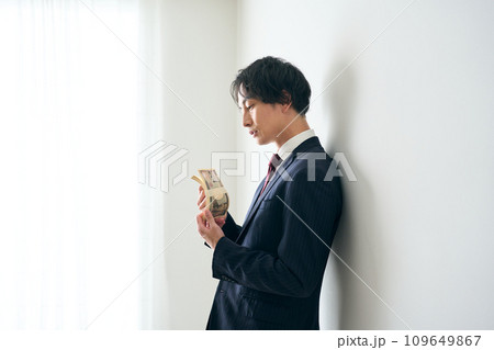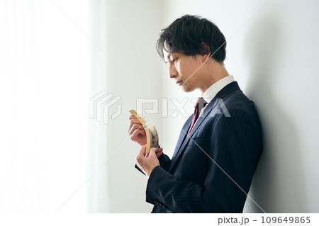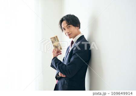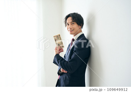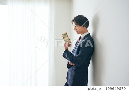 札束を手に持つ男性