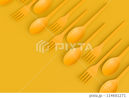 Set of disposable utensils like plate, folk, spoon,knife, cup and pepper mill