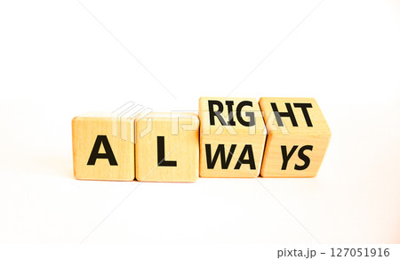 Always alright symbol. Concept words Always alright on wooden block. Beautiful white table white background. Business always alright concept. Copy space.